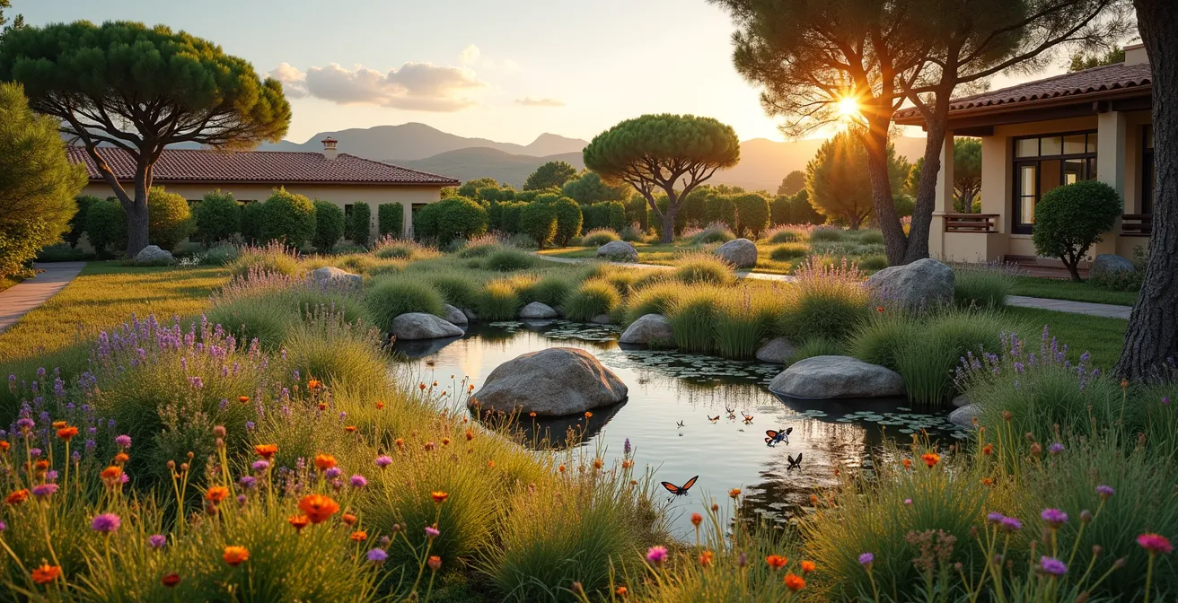 La alternativa radical y ecológicamente superior es la pradera de flores mediterránea. Inspiradas en los paisajes naturales de la península, estas praderas combinan gramíneas ornamentales con una mezcla de flores anuales y vivaces autóctonas. El resultado es un tapiz cambiante, de bajo mantenimiento y altísimo valor ecológico. Proyectos públicos, como los desarrollados en el Jardín del Turia en Valencia, han demostrado que reemplazar césped por praderas no solo reduce drásticamente el consumo de agua y la frecuencia de siega, sino que crea un espectáculo visual que atrae a una multitud de insectos polinizadores.
