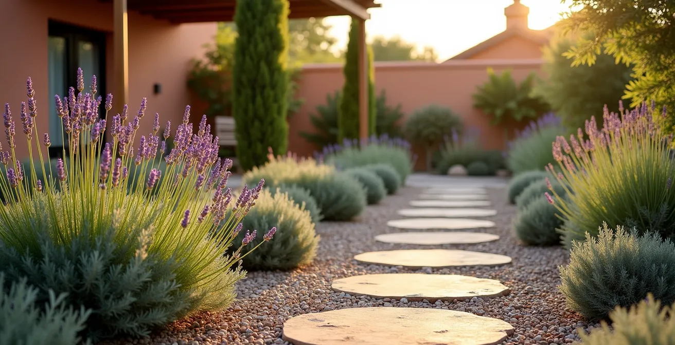 La alternativa radicalmente más eficiente es invertir en plantas que simplemente no necesitan que las riegues. La xerojardinería no significa tener un jardín de cactus y piedras; es un diseño inteligente que utiliza especies perfectamente adaptadas al calor y la sequía. En la mayor parte de España, esto implica apostar por crasuláceas, gramíneas ornamentales y aromáticas mediterráneas. Combinadas con un buen acolchado de grava o corteza de pino, no solo se elimina el riego, sino también la aparición de malas hierbas.
