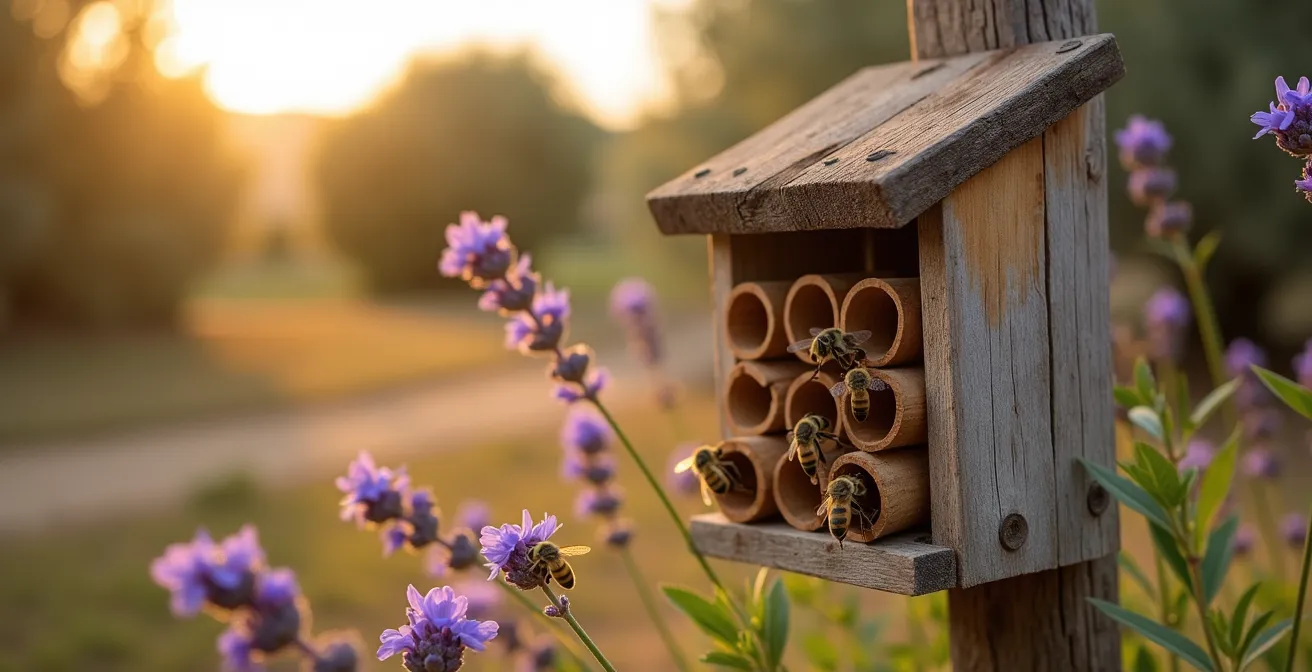 ¿Y si el enfoque no fuera simplemente «atraer», sino «cultivar»? ¿Si la clave no estuviera en la decoración, sino en la ingeniería precisa de microhábitats? Este artículo abandona las generalidades para adoptar la perspectiva de un entomólogo de conservación. No se trata de comprar un objeto, sino de entender y replicar las condiciones exactas que las abejas solitarias ibéricas necesitan para completar su ciclo vital. Vamos a transformar su jardín en un laboratorio de conservación a pequeña escala, donde cada acción tiene un propósito científico y el éxito, en forma de nidos sellados y una nueva generación de polinizadores, es visible y cuantificable.