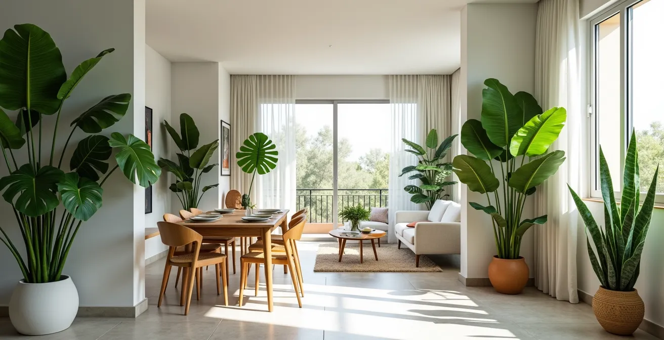 - Controlar la densidad: En pisos de menos de 80 m², limita la presencia de plantas de gran formato. Una buena norma es no tener más de una planta verdaderamente grande (más de 1,5 m) por cada 10-12 m² de espacio.